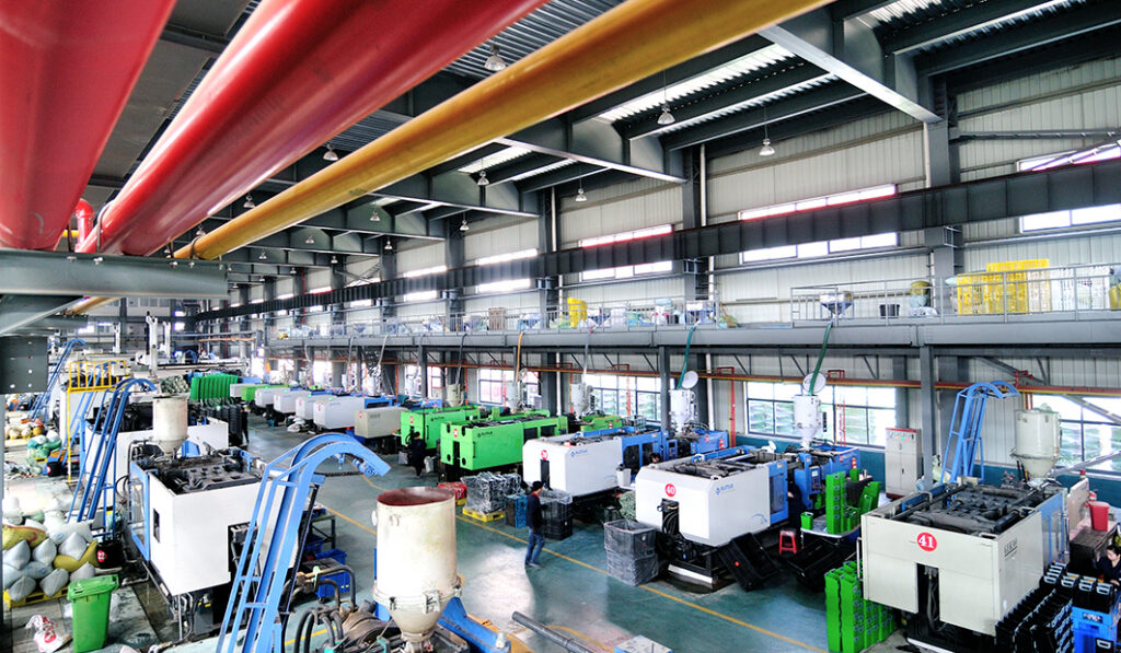We have 116 sets of injection machines, with a maximum capacity of 5500T, 100000g, 8 sets of blow moulding machines and 3 of pallet welding machines.